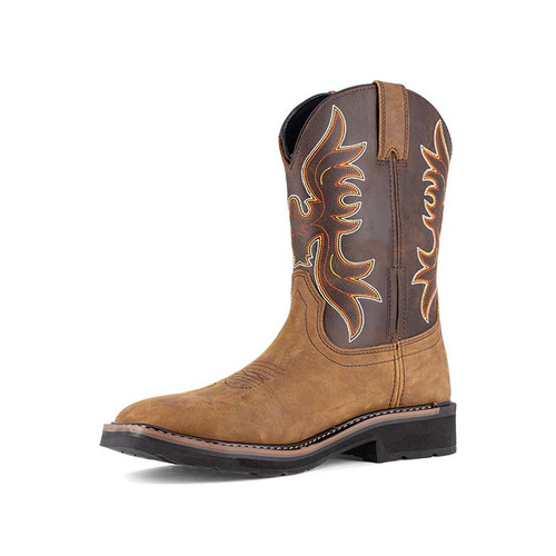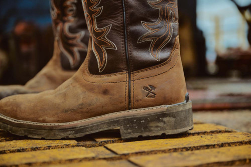 Wanted: Fearless Work Boots. Meet the Iron Age Outlaw Men's Brown and Taupe Square Steel Toe Work Boot. Carve your own path and handle any challenge with the tough, resilient, and bold Outlaw Square Toe Series.